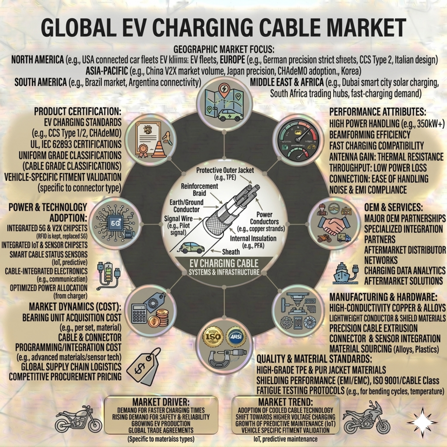 As charging speeds increase, the thermal load on the cable becomes the primary engineering bottleneck. To combat this, the market is pivoting toward active thermal management. While standard AC cables remain the high-volume staple for home use, the high-value growth is found in cables that utilize liquid cooling to manage 1,000+ Amp charging events—essential for the electrification of heavy-duty Class 8 logistics fleets and long-haul trucking.